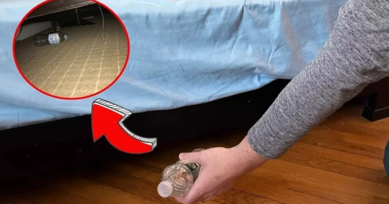 Why should you throw a bottle of water under the bed as soon as you check into a hotel?