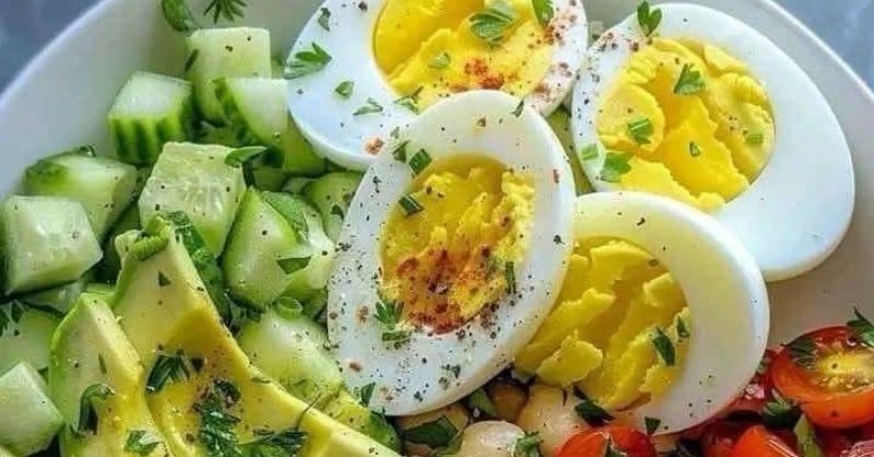 Fresh & Healthy Protein Salad Ingredients: 1 cup diced cucumber 1 cup cherry tomatoes, halved 1 ripe avocado, sliced 2 hard-boiled eggs, halved or quartered 1 cup canned...