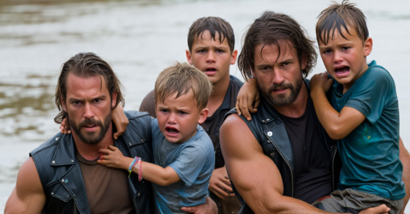 Bikers dove headfirst into raging floodwaters to save twenty-three kindergarteners, while their terrified teacher froze on the roof screaming they were all going to die. The yellow bus...