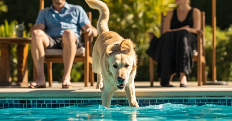 The dog suddenly jumped into the pool: the bathers began to get outraged, until the dog got out of the water – because it was holding something terrifying in its mouth